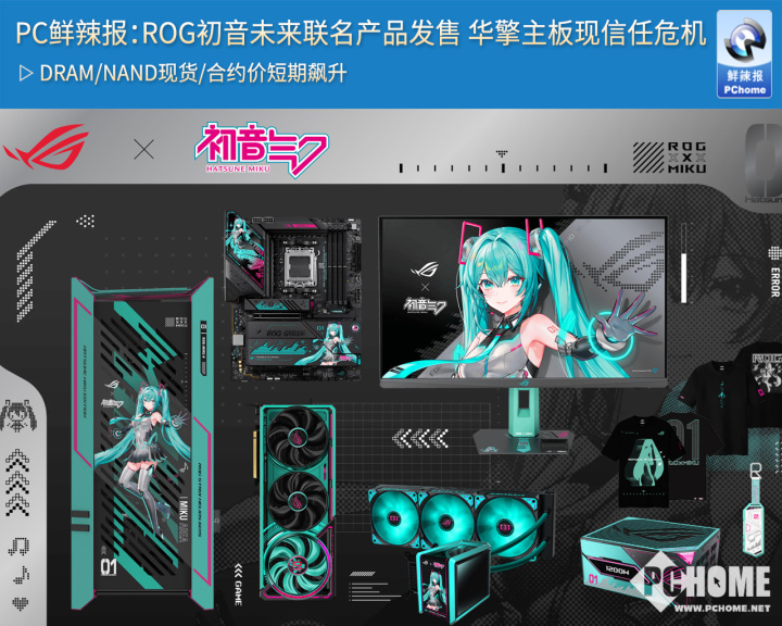 ROG与虚拟歌手初音未来的联动正式推向零售市场,日本市场宣布11月7日起在家电与电商渠道逐步发售,并有部分经销商采取抽选方式销售限定套装。这次联名并非单一外设,而是覆盖主板(例如ROG STRIX X870E-H HATSUNE MIKU EDITION)、显卡(定制RTX系列)、机箱、AIO散热、SSD外置盒、电源、显示器以及服饰周边,且在日本大型零售商实行抽选发售以控制供货与避免黄牛。