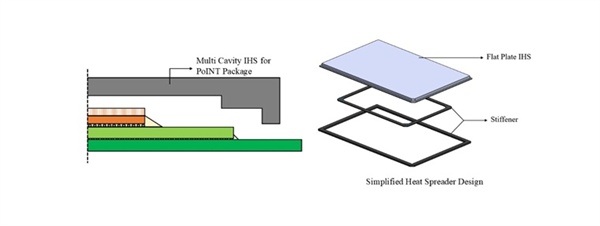 这一创新设计专门适配多层堆叠及多芯片封装结构,核心逻辑是将传统一体化集成散热器拆解为多个结构简易的独立组件 —— 这些部件可通过标准制造工艺组装,大幅降低了制程复杂度与成本。通过优化粘合剂配方、平板结构及加固件设计,该方案进一步提升了热界面材料的性能表现。