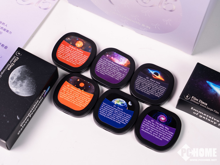 这些已经被镜头记录过的星系、天体,已经可以通过一张张胶片进行复现。OPPO在这里为我们提供了二十多张宇宙经典照片,通过小型投影仪即可随时复现。在天花板上就能仰望星空,想想也真的是很有科技感。