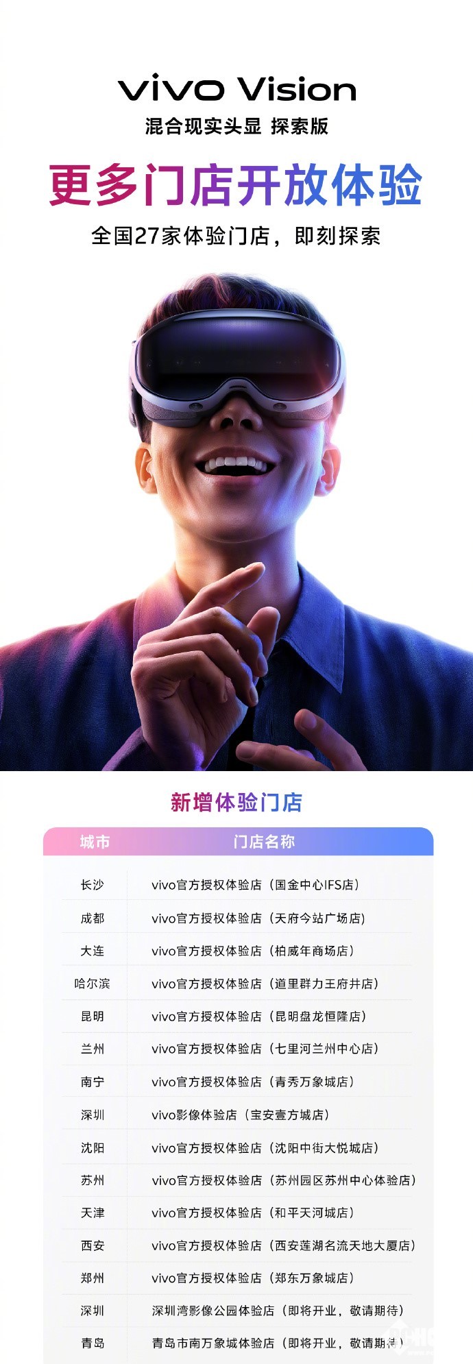 11月21号消息,vivo官宣vivo Vision混合现实头显探索版已登录更多体验门店,此次新增了15家体验门店,目前全国共有27家vivo官方授权体验店能进行体验。vivo Vision拥有398g突破性超轻量设计、搭载双目8K臻彩屏、支持VR游戏,还有自由多窗口工作台,让影音、游戏、办公升维体验。