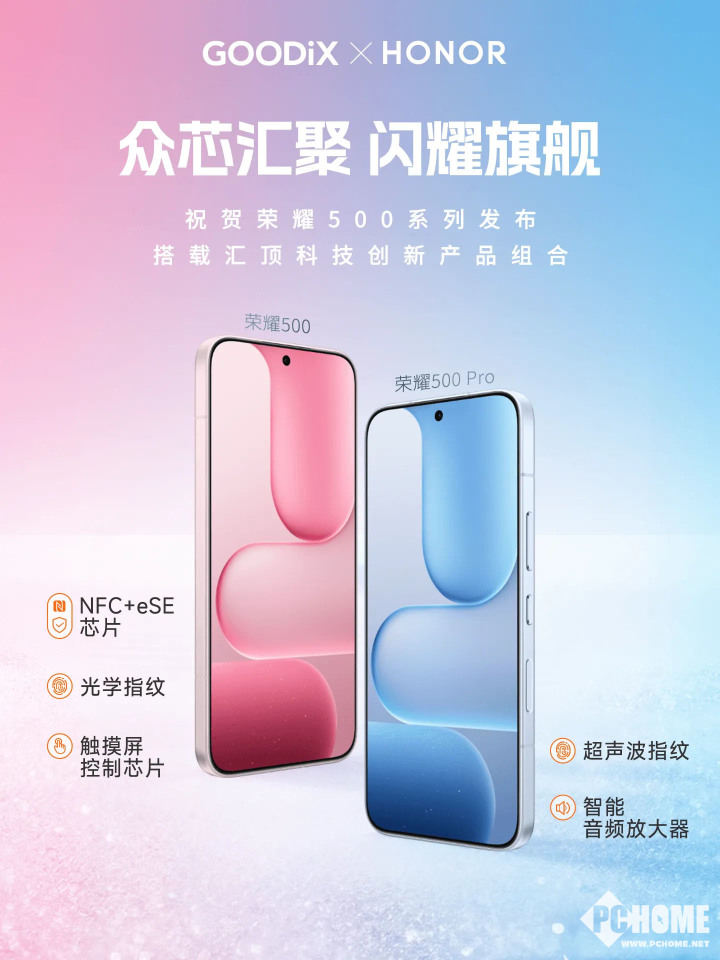 据悉,荣耀500系列采用了多种汇顶科技解决方案,包括了超声波/光学指纹、音频、触控及NFC+eSE等,齐芯助力荣耀新品旗舰体验。