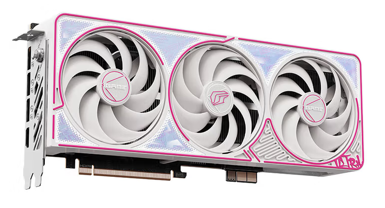 从外观来看,该系列延续了Ultra标准版的嘻哈艺术风格,采用白色外甲搭配粉色描边,但将原有的“镭射”效果升级为更为柔美的“珠光”渐变,光线折射更细腻。七彩虹在包装内随附了专用连接件和工具,玩家可轻松切换供电方式,无需更换电源或显卡硬件。如果选择通过主板供电,还可以利用附赠的胶套对显卡正面的传统电源接口进行遮挡,保证整机内部的简洁美观。