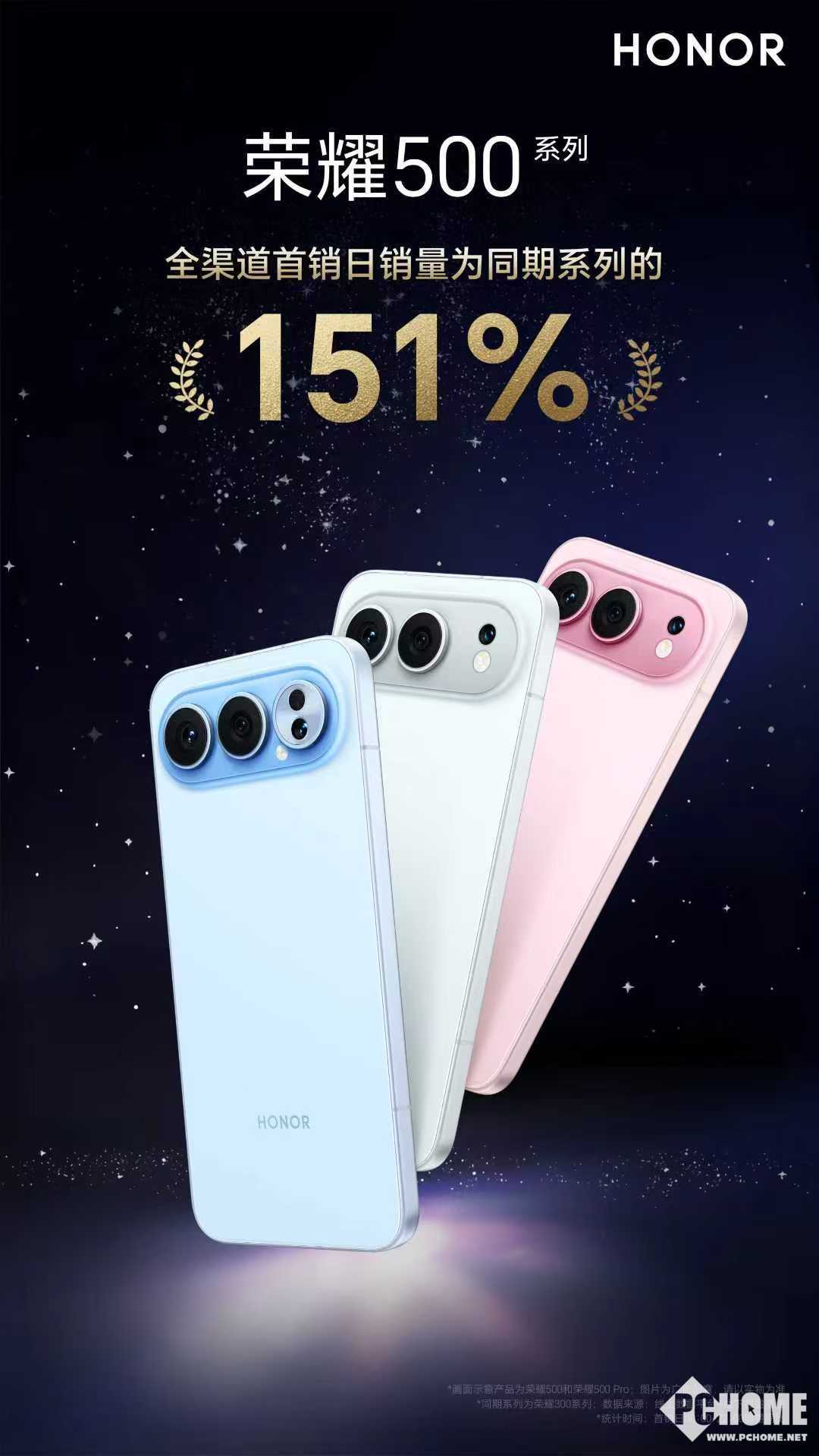 双超定位的荣耀500系列,在发售过后迅速获得了大众青睐,首销当天全渠道销量达到了同期系列的151%,表现十分火爆。由此可见荣耀数字系列的超强号召力,毕竟是被大众追捧超过10年的经典产品。