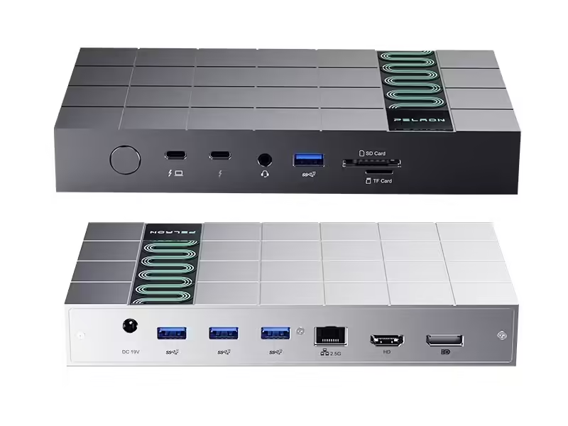 磐镭新推出的Link G2E以雷电5兼容性和内置M.2硬盘位的创新设计,行业首批支持雷电5协议的扩展坞,Link G2E通过上下行双雷电5接口(Type-C形态)实现80Gbps超高速传输。满足8K显示器接入需求,也能为连接的高性能笔记本提供140W PD反向供电,解决创作者和游戏玩家外接多设备时的供电焦虑。