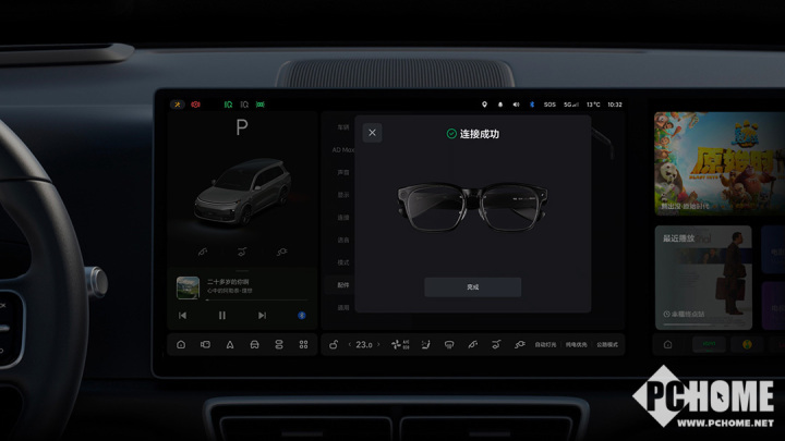 眼镜与车机可以实现真正的无缝联动:上车轻触触控板即可完成首次配对,之后自动连接,全程无感。未来,主驾可通过眼镜独立收听导航和辅助驾驶播报,不影响后排娱乐体验;并可与车端“任务大师”联动,在观影场景下自动将前排音频切入眼镜(该功能计划于2026年3月上线,具体以系统更新为准)。