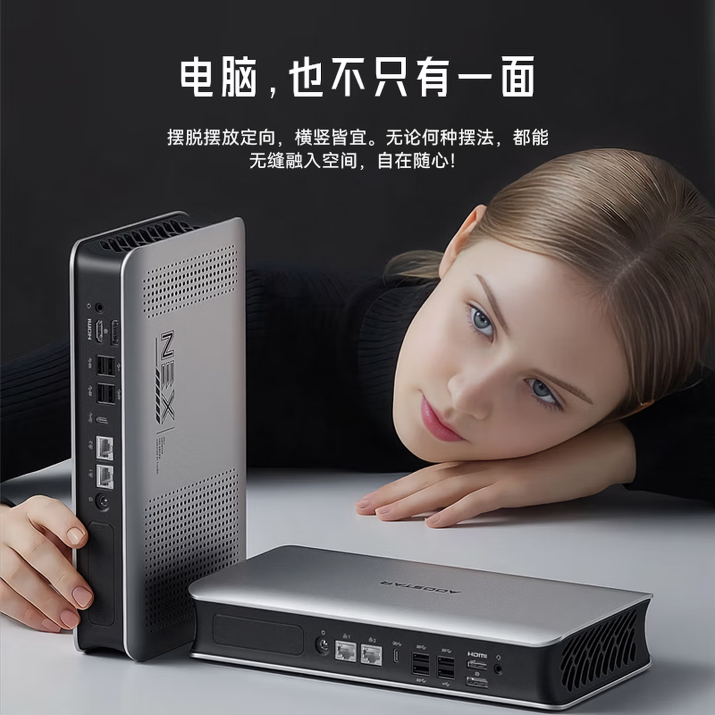 面板采用快拆结构设计,散热方面搭载冰川5.0散热架构,15000mm²真空腔均热板+铜质鳍片,同时也为SSD配备独立涡轮风扇,CPU功耗释放最高峰值可达140W。Wi-Fi 7无线网卡,双声道腔体扬声器,麦克风可精准识别语音指令。虽整机依赖固定电源但是像充电宝等移动电源也可供电启动。