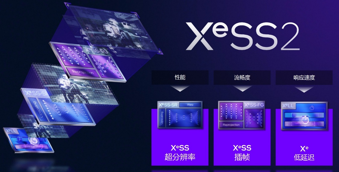 然而,仅有强大的硬件还不足以征服苛刻的3A游戏。为此,英特尔带来了同样革命性的软件武器:XeSS 2超分辨率技术。这是一套由AI驱动的完整性能增强方案,尤其对于依赖集成显卡的轻薄本而言,其价值堪比附魔。