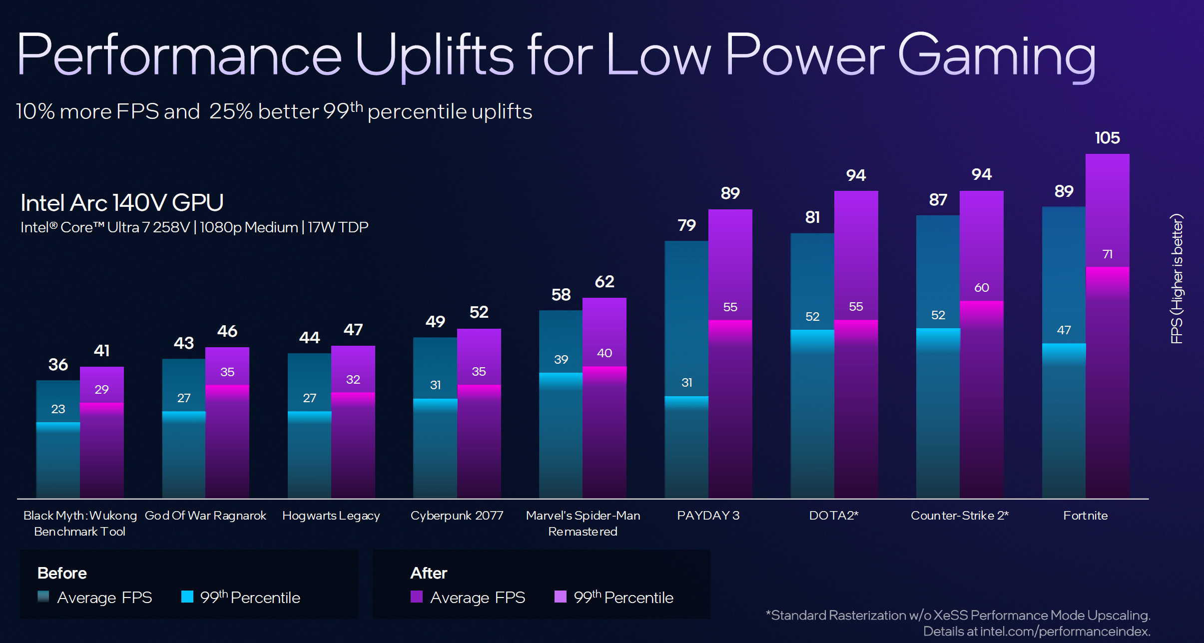 当突破性的Xe3 GPU与AI加持的XeSS 2技术珠联璧合,其催生的化学反应正在彻底重塑轻薄型笔记本的产品定义。过去,在这类设备上尝试运行《赛博朋克2077》或《战地》系列等大型游戏,通常被视为不切实际的幻想。但Panther Lake平台正在将幻想变为可触碰的现实。用户只需在1080p分辨率下适当调整画质设置,便能获得完全可玩的流畅帧率体验。