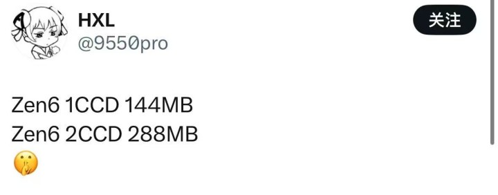 AMD Zen 6处理器被曝同样采用144/288MB缓存方案