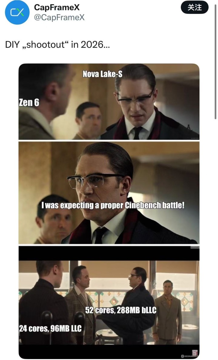 这一改变是对英特尔 Nova Lake-S的针对性回应,直接对标英特尔 Nova Lake的144/288MB bLLC方案,大容量缓存会显著降低内存延迟,双方均将显示器性能押注于大容量缓存上,在游戏性能竞争上正式形成对抗格局,争夺下一代游戏市场“神U”的称号。