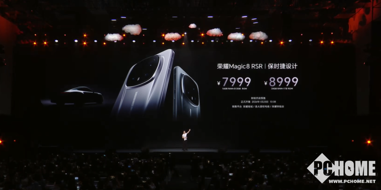 荣耀Magic8 RSR保时捷设计提供两个存储版本,16GB+512GB售价7999元,24GB+1TB版本售价8999元。