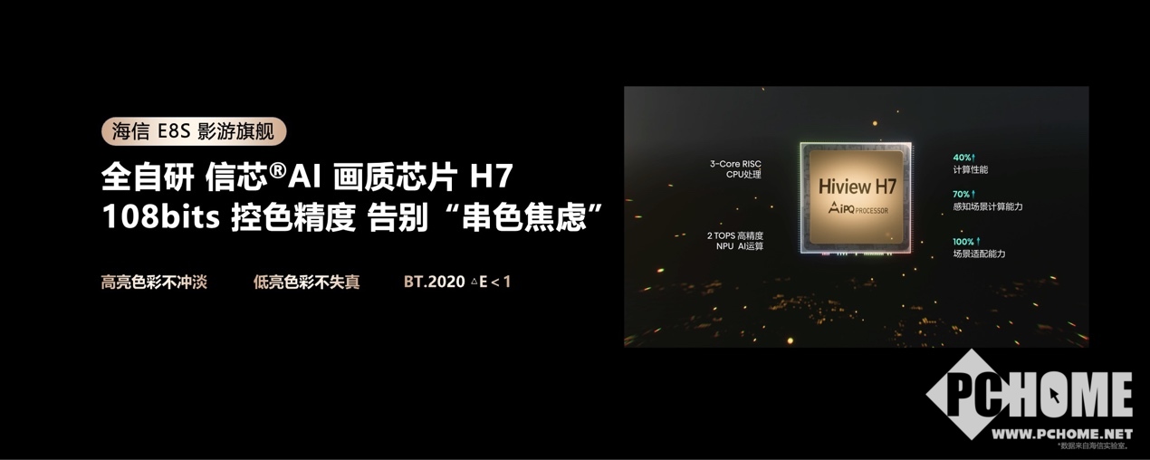 控光精度上,海信E8S搭载全球首款基于RISC-V开放架构的信芯AI画质芯片H7,首创三维光色同控技术,毫秒级同步调控三原色光的强度与配比,支持3x10240级精准分区控制,1个彩色分区的控制精度超越传统3个控光分区;最高配备9360个控光控色分区,配合108bits控色精度,色准ΔE<1,达到专业显示器级别,满足影视创作、高端游戏等严苛场景需求。