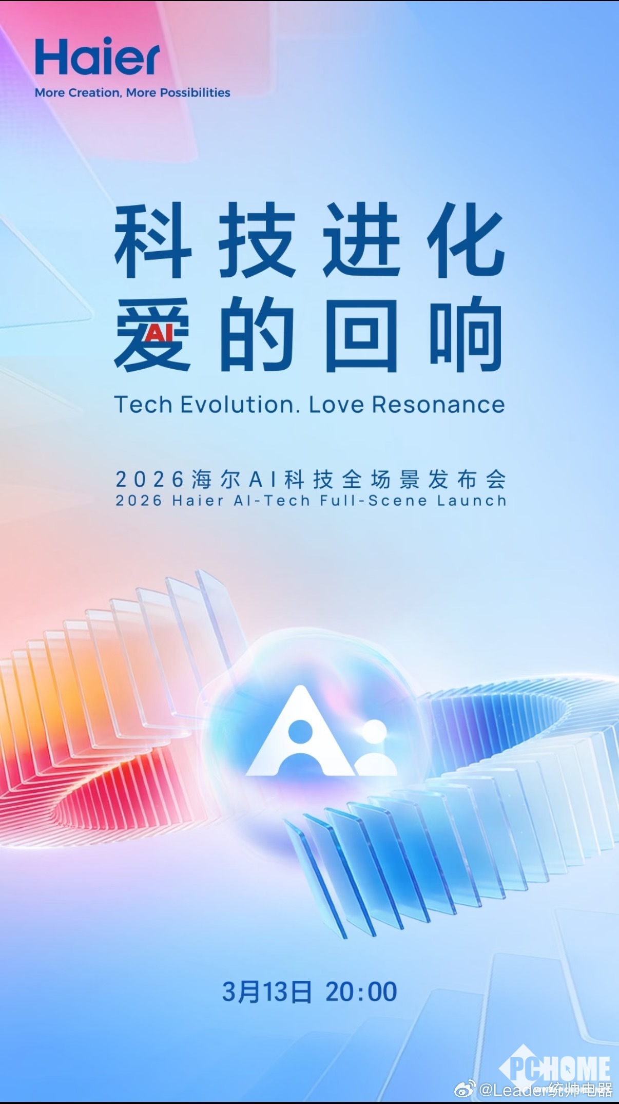 PChome 3月5日消息,海尔智家携海尔、卡萨帝、Leader等全品牌矩阵重磅参展AWE 2026,包馆呈现智慧生活全场景解决方案,同步参与行业论坛、发布创新成果。并会在3月13日举办2026海尔AI科技全场景发布会,全方位展现AI赋能下的生态进化与技术落地,彰显全球家电龙头的创新实力。