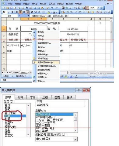 5、这里注意日期单元格格式调整一下:在该单元格点右键->设置单元格格式
