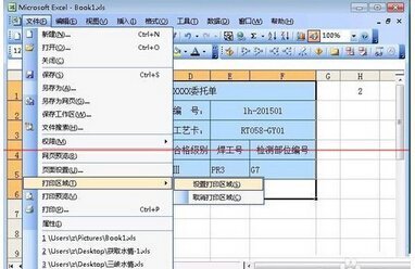 7、设置打印内容,选中打印的内容,文件->打死袁满米红沙量印区域->设置打印区域。
