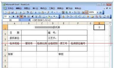 2、在表sheet2的打印区域后面的列作辅助单元,H1内填写打印数据在表SHEET1中的行序号,第一个:2