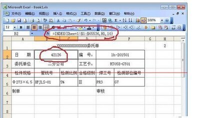 公式解释:Sheet1!$1:$65536就是引用的数据区域(表sheet1),“H1”打印数据在表SHEET1中的行序号,“2”表示引用区域的第二列