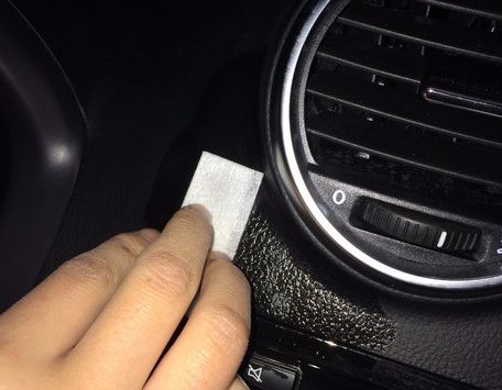 5.粘贴上以后,一定要用手按压15秒左右,让胶与车体完全粘牢固。