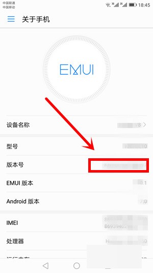3、在华为mate10手机“关于手机”页面, 找到“版本号”选项,用手指连续点击该项,直到提示“开发者选项已开启”字样。