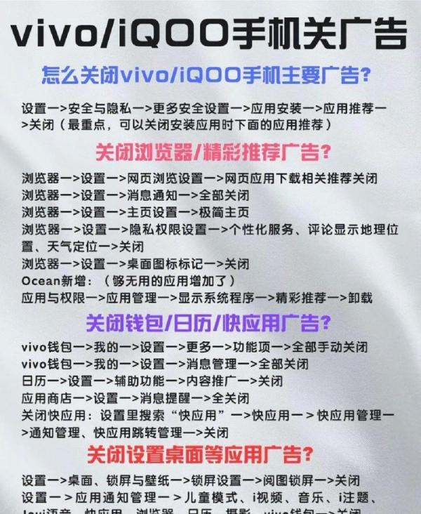 在使用ViVO/iQOO手机时,可能会遇到各种广告推送。以下是一些关闭广告的技巧,帮助用户获得更纯净的使用体验: