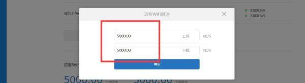 设置访客WIFI限速在高级设置页面底部找到“访客WIFI限速”功能,点击下方的“编辑”按钮,弹出限速配置窗口。在此窗口中输入具体的上传速度和下载速度数值(如100KB/s或1Mbps),点击保存即可完成设置。