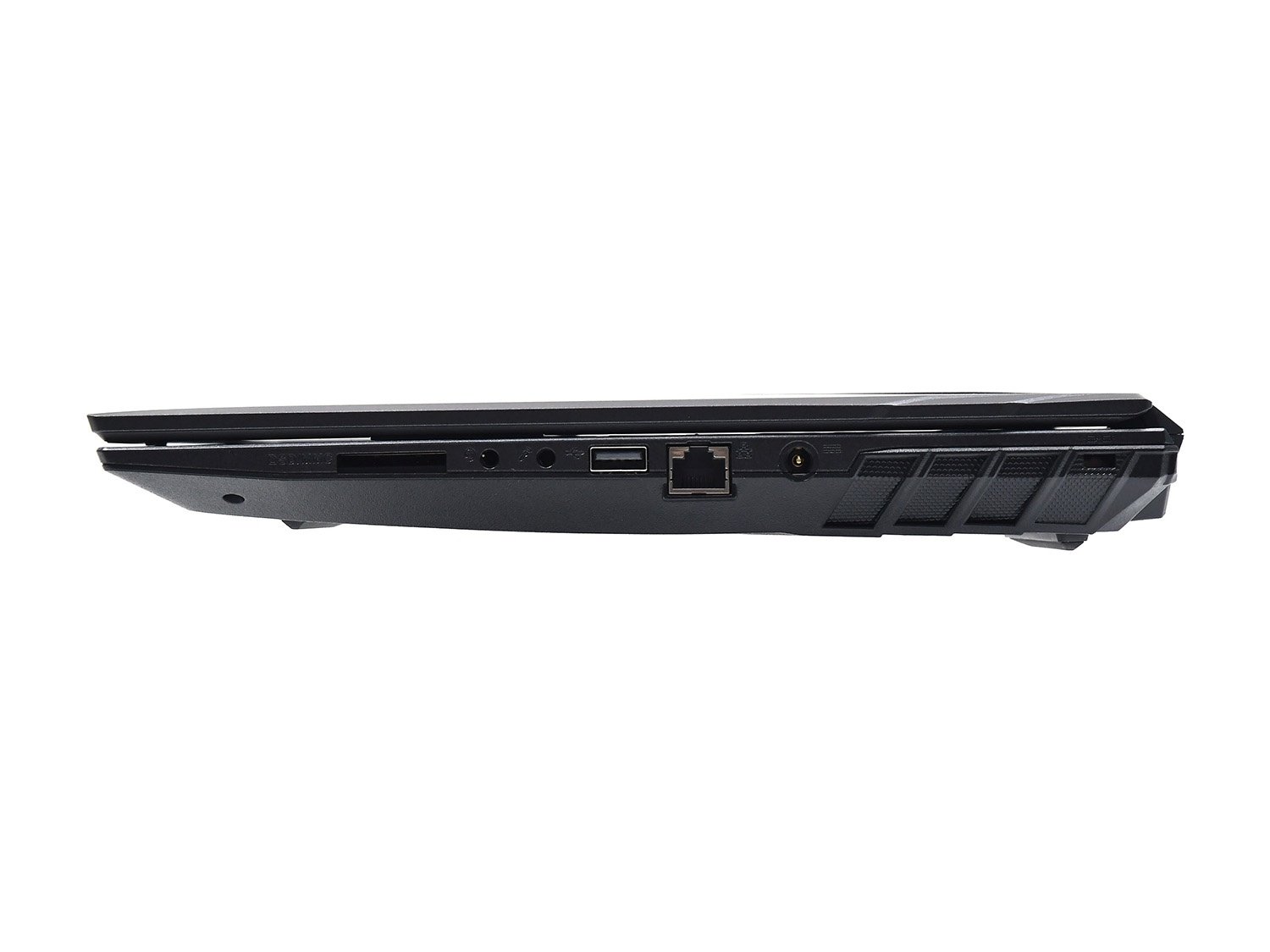 神舟战神TX6TI的C面的键盘为全尺寸巧克力键盘,方向键是正常大小,键帽上做了高摩擦处理,键程较长,回弹干脆,操作感良好。值得注意的是,该键盘没有背光,不过这也无伤大雅,在接口扩展方面,这台ZX6-CU5DA是相当丰富的,机身左侧依次为一个miniDP接口、一个HDMI接口、一个TYPE-C接口、两个USB3.2接口;机身右侧为一个RJ45网线接口、一个USB2.0接口以及一组音频输出输入接口;电源接口位于机身后部。